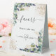 This table tent sign is the perfect size for our tables and easy to read. I also like the material it is made with and no worries about it falling or sliding. Just perfect! Everything about this card is perfect. I like that it says what we want on the front and on the back we were able to personalize a message for our guests.