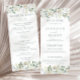 Elevate your wedding with our elegant botanical nature-inspired classic wedding program cards. Featuring lush greenery and eucalyptus leaves paired with white rose flowers, these cards add a touch of timeless beauty to your celebration. Perfect for nature-themed, rustic, and garden weddings, these program cards beautifully complement your wedding theme.
