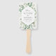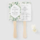A greenery themed wedding program fan with watercolor eucalyptus. You can edit the text and colours. For further customisation click on the personalise further link.