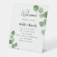 It is sturdy than I expected. Was worried about the material being flimsy but it is not. It is printed on some sort of plastic material. It should serve well at our wedding as long as wind isn’t too bad. Otherwise we will put some paper weights behind it and should be fine.