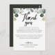 This greenery eucalyptus thank you reception card is perfect for an elegant wedding. Place these cards at the table setting for each of your guests at your wedding reception. Personalise the card with your names and a special thank you message.