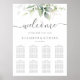 Beautiful wedding seating chart sign featuring watercolor eucalyptus and gold leaves.