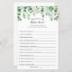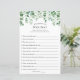 Who Knows the Bride Best? Bridal shower game card featuring a watercolor cascade of greenery and blush florals.