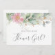 Beautiful flower girl proposal cards featuring blush pink floral watercolor eucalyptus and gold leaves.