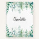 An elegant white background. Decorated with watercolored eucalyptus greenery and woodland ferns. Personalise and add your name.