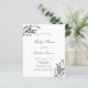 A stylish white background on the front. Decorated with eucalyptus and lavender florals. Personalise and add your names and details.