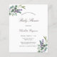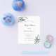 A stylish white background on the front. Decorated with eucalyptus and lavender florals. Personalise and add your names and details.