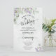 These wedding programs are elegant and tasteful, while still being budget friendly. The design features a bevy of hand painted watercolor sprigs of eucalyptus leaves, greenery and lavender flowers in shades sage green and light purple. The typography features lacy script calligraphy, and there is room for details on the ceremony, the bridal party, and a short thank you.