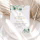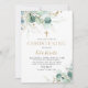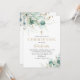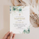 A formal baptism invitation featuring lush green eucalyptus accents paired with elegant gold details. Perfect for celebrating this special occasion with timeless sophistication.