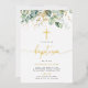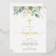 A eucalyptus leafy baptism or christening invitation with real foil text - gold foil, silver foil or rose gold foil. Please note the Eucalytpus graphics have faux gold details which will not be printed with real foil - only the wording that shows the foil will print in real foil.