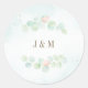 Eucalyptus Leaves Floral Wreath Monogram Wedding Classic Round Sticker