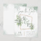 Eucalyptus Leaves Gold Frame Greenery Wedding Save Announcement Postcard