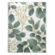This design features eucalyptus leaves and branches on a white background. The design has a flat, graphic style and a soft green and gold colour scheme. The pattern is composed of leaves and branches arranged in a different direction.