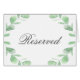 Watercolor reserved sign with eucalyptus leaves for wedding celebration.