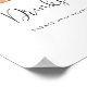 My thoughts on this product was excellent. Well printed in a gloss finishing and just the size l ordered. It arrived in good condition and am overall satisfied with the product. The printing turned out great. I was quite surprised with the finishing touch to the poster. The semi gloss was just right and a perfect size to display at the wedding.