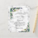 Marble print as background decorated with eucalyptus greenery and golden foliage. Personalise and add your names and wedding details. Black letters.