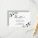 Eucalyptus White and Sage Modern Calligraphy Reception Info Horizontal Enclosure Card... Designed to coordinate with our Eucalyptus Greenery wedding invitations, our horizontal reception enclosure card informs your guests of the activities taking place after the wedding ceremony. Our dedicated botanical reception card features emerald-hued eucalyptus leaves bordering your reception information on a crisp white background. The back of the card is trendy sage green. Chic modern calligraphy displays the text for "Reception." All other text can be easily revised on the personalisation template.