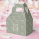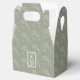 With a colour palette from ivory to spring green and dark moss, this wedding collection features a handwritten script font and eucalyptus leaf accents to add that wonderful modern touch. The coordinating favour box shown here has all the above with a striking leaf pattern in light sage topped by your initials and wedding date in a white-trimmed frame. Search ID901 to see other colour choices and coordinating pieces for this unique wedding collection.