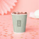 With a colour palette from ivory to spring green and dark moss, this wedding collection features a handwritten script font and eucalyptus leaf accents to add that wonderful modern touch. The coordinating paper cup shown here has all the above with a striking eucalyptus leaf pattern and rectangular, white-trimmed frame to hold your initials and wedding date. Search ID901 to see other colour choices and coordinating pieces for this unique wedding collection.