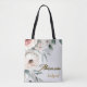 This tote bag is perfect for the modern bride and her bridesmaids. The floral design, featuring eucalyptus, peonies, white flowers, and greenery in a light pink watercolor style, is both stylish and functional. The spacious interior is perfect for carrying all your essentials, while the eye-catching design adds a touch of elegance to any outfit.