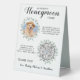 This table tent sign is the perfect size for our tables and easy to read. I also like the material it is made with and no worries about it falling or sliding. Just perfect! Everything about this card is perfect. I like that it says what we want on the front and on the back we were able to personalize a message for our guests.