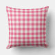 Hand-drawn eucalyptus pink and white gingham check plaid throw pillow.