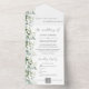 Stylish all in one wedding design featuring a eucalyptus greenery border on a clean white background. Includes RSVP with a scannable QR code that you can link to your wedding website. Generate your own unique QR code via the "personalise this template" feature on the product page. Add your URL to the area provided and a brand new QR code will generate on the design just for you.
