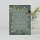 Chic botanical gender neutral baby shower invitation features a border of lush sage green botanical leaves and watercolor eucalyptus foliage with gold foil trim. Personalise with your baby shower details in modern lettering on a tone on tone moss green background.