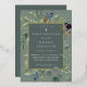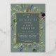 Chic botanical confirmation invitation features a border of lush sage green botanical leaves and watercolor eucalyptus foliage with gold foil trim. Personalise with your ceremony and party details in modern lettering on a tone on tone moss green background.
