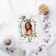 Our Eucalyptus & Sage graduation announcement frames a photo of your graduate with an elegant square border of lush watercolor eucalyptus and sage green leaves, with real gold foil trim on a soft off-white ivory background. Personalise with your graduate's class year, name, and school. Add a personal message to the back, along with an additional photo.