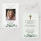 An elegant memorial photo funeral memorial prayer cards featuring sage green eucalyptus leaves. You can customisze with your chosen prayer, psalm or poem. Elegant botanical border on both sides and a wooden cross with leaves on the back. The serene, natural aesthetic of eucalyptus leaves provides a calm and beautiful theme for funeral services and it symbolises healing, protection, strength, peace, and longevity.