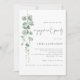 Eucalyptus Script Engagement Party Invitation.   Minimalist botanical style, with watercolor greenery flowing down on the left hand side and text to the right. A set handwritten script for Engagement Party and the rest of the text you can easily personalise.