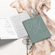 A beautiful typography based wedding program card featuring your initials in oversized script lettering on the front cover, in tone on tone shades for a watermark effect. Personalise with your ceremony details and wedding party, and add additional custom text to the back. Our Eucalyptus colorway is an elegant mix of dusty greens, featuring pale green and white lettering on a sage green background.