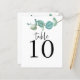 A size 4.5 x 5.6” semi-gloss 110lbs weight, which is of similar thickness to a postcard, with ONE per sheet. Minimalist Eucalyptus Script Wedding Table Number. Table is in a set handwriting style script and your table number beneath. Easily personalise the number. The same design is also on the back.