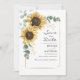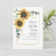 Create a modern Sunflower Floral save the date card with this cute template featuring beautiful rustic floral bouquet, geometric gold effect frame, with modern simple typography.