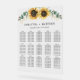Elegant wedding seating chart featuring sunflowers eucalyptus greenery watercolor foliage with modern typography on white background