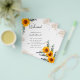 A modern, elegant, wedding program, timeline. A chic white background. Decorated with sunflowers, green watercolored eucalyptus leaves, sprigs, greenery, faux gold leaves and golden glitter spots. Personalise and add your names and wedding details. Black coloured letters. If you have more text it's possible to reduce the line space.
