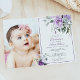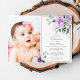 Celebrate your little girl's special day with this Eucalyptus Violet Flowers Dedication Invitation. Featuring delicate violet florals paired with soft eucalyptus leaves, this design is perfect for a baby dedication, baptism, or christening. Customise with your own photo and details for a personal touch. The watercolor flowers in shades of violet, lavender, and greenery create a serene and timeless look that complements any religious event for your precious daughter.
