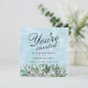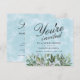 A beautiful watercolor, painted in a blue sky design, provides the backdrop for this invitation... trimmed with pretty eucalyptus and greenery, and finished with simple elegant typography script. Your guest will find a matching watercolor background on the back, with all the shower details.