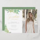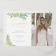 Announce your high school or university graduation with this trendy greenery graduation announcement photo card featuring hand painted watercolor eucalyptus leaves and gold calligraphy script. Personalise these cards with your own custom photo and personalised text.