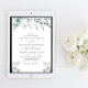 Elegant all-in-one wedding invitation featuring watercolors of sage green eucalyptus greenery, stylish script and soft grey typography. On the back, input your wedding website address to create a QR code for your guests to scan to RSVP online and obtain additional wedding details such as accommodations and directions.
