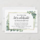 Greenery Eucalyptus, Let's celebrate, Wedding Rehearsal Dinner Invitation card. Planning a wedding Rehearsal Dinner celebration with the to-be Bride and to-be Groom, before their BIG day? Invite the guests with this Rustic Wedding Rehearsal Dinner Invitation Card. Add your rehearsal dinner details in matching black font / lettering.