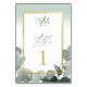 Eucalyptus wedding, sage green and gold, modern, monogram table number template.
