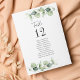 Plan your wedding reception with precision, from save the date, to day of the wedding events like the reception and seating arrangements with these botanical eucalyptus leaves table number seating chart cards. Simple plug in the names of the guests and the table numbers. This way, the wedding party will arrive knowing where they are meant to be seated ahead of time The details on the card are on both sides to make it easy to identify the table numbers. TIP: - Add a space in front of the table number so the digits land in the middle of the card