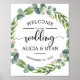 This is to welcome your guests sign featuring greenery eucalyptus flower design.