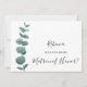 This simple and elegant proposal card features an original watercolor painting of a green eucalyptus sprig on a white background.