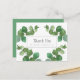 Fresh green eucalyptus leaves frame your wedding thank you with your family name set in classic elegant typography.