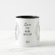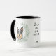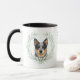 "LOVE MY BLUE HEELER" declares this mug for the Blue Heeler dog owner. Each side of the mug has a watercolor portrait of a beautiful Australian Cattle Dog framed by soft green watercolor eucalyptus leaves. Between the two images is the text, which may be easily customized, or even removed by you, and your monogram or name.