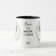 "LOVE MY BOSTON TERRIER" declares this mug for the proud Boston Terrier dog owner. Each side of the mug has an adorable portrait of a black and white terrier framed by soft green watercolor eucalyptus leaves. Between the two images is the text, which may be easily customized, or even removed by you, and your monogram or name.