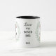 "LOVE MY BOXER DOG" declares this mug for the proud Boxer owner. Each side of the mug has a beautiful portrait of a brown and white Boxer framed by soft green watercolor eucalyptus leaves. Between the two images is the text, which may be easily customized, or even removed, by you, and your monogram or name.